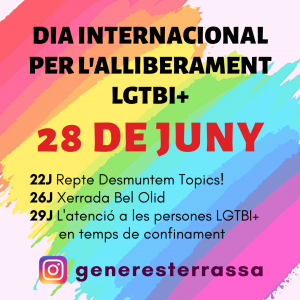 El 28 de juny es commemora el Dia per l’Alliberament de Lesbianes, Gais, Trans i Bisexuals, el Dia de l’Orgull.